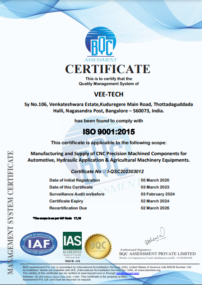 - ISO 9001:2015 Certificate No : I-QSC202303012